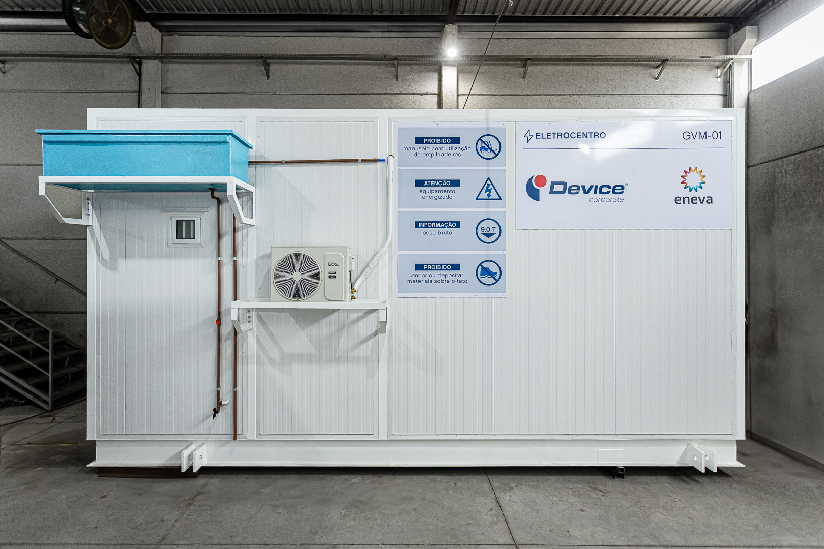 O centro de distribuição de energia e controle autossustentável desenvolvido pela Device® é compacto, modular e de fácil transporte. Com ampla flexibilidade de customização. É aplicável a soluções definitivas ou temporárias. Com a tecnologia autossustentável, o eletrocentro gera energia necessária para todo o sistema de automação, instrumentação, segurança e iluminação da instalação. A energia utilizada é renovável e não poluente, proveniente da energia solar, eólica ou a combinação de ambas. Diferencial do eletrocentro autossustentável é a eliminação de geradores de energia a diesel ou de linha de transmissão elétrica na unidade, o que permite a instalação em locais isolados e diminuição de custos de projeto e operação.